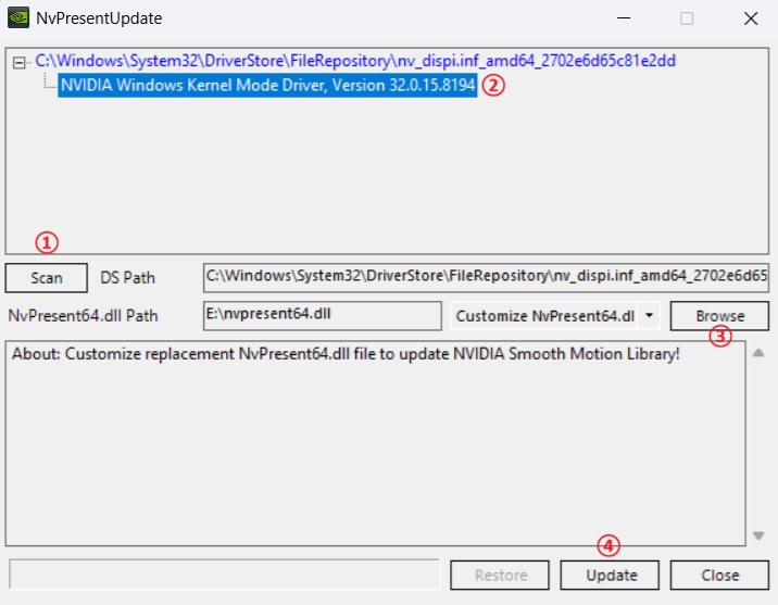 단, 더 최신 버전 dll로 교체하고 싶다면 NvPresentUpdate 사용 가능