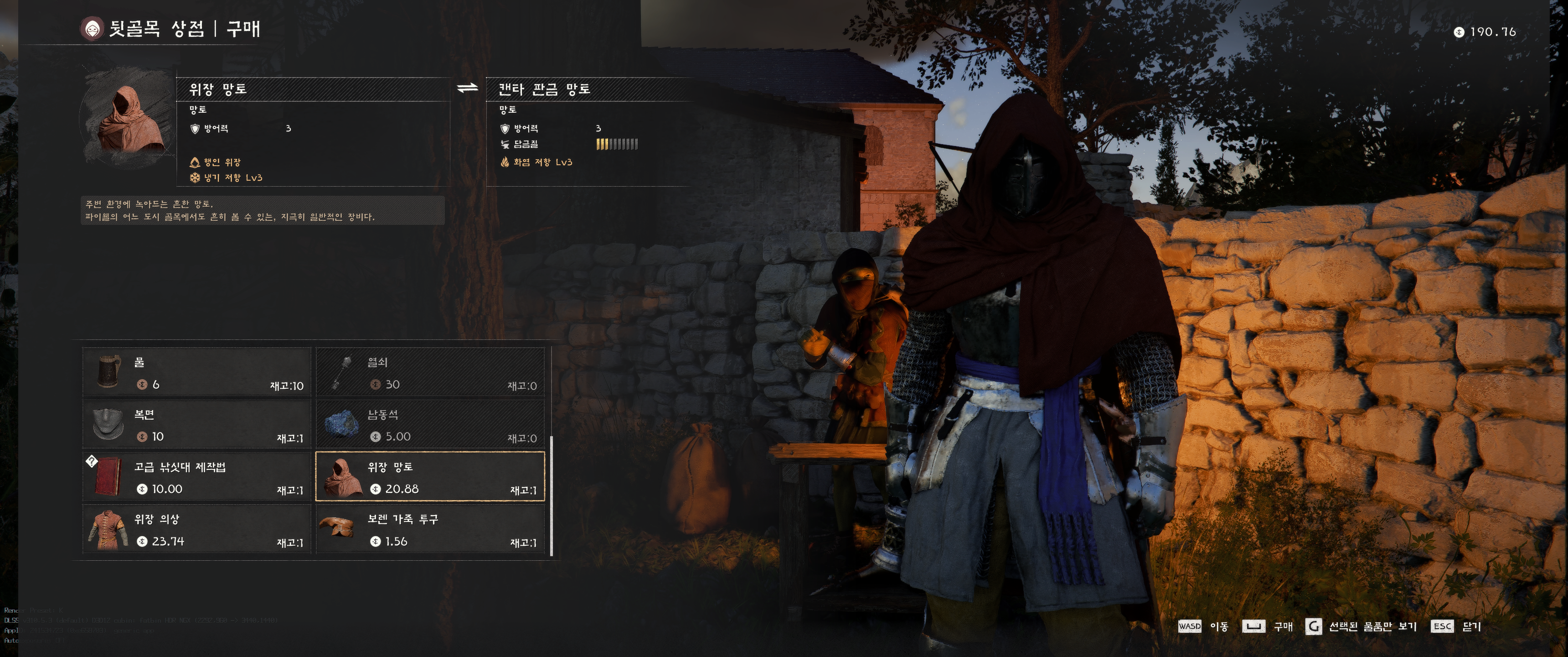근처 뒷골목 상점에서 위장복을 거금 주고 구입해 착용했는데도 쫓겨남.