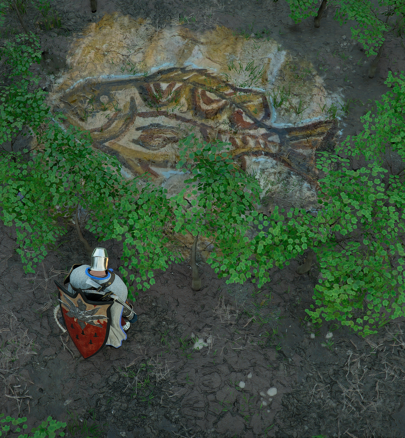 빨간색 X에 가면 땅에 그림이 보임
