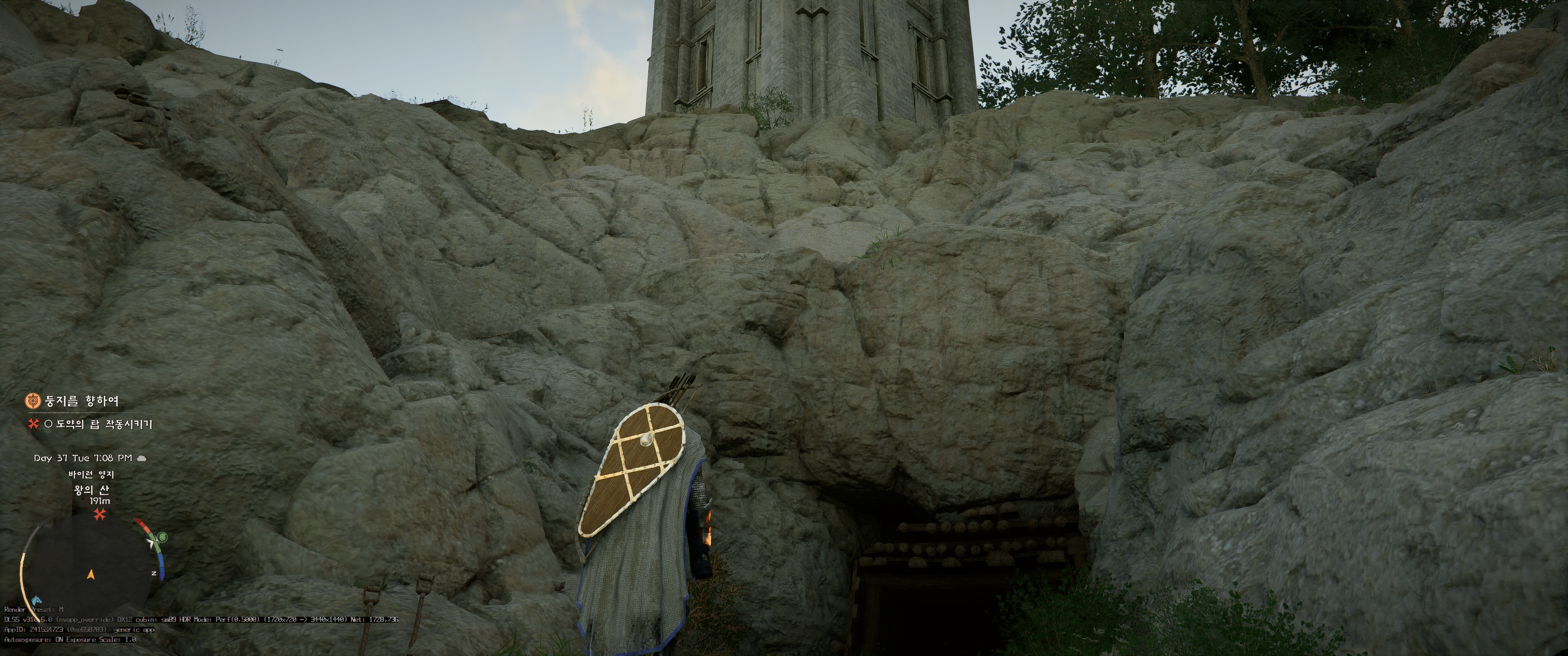 탑 근처 동굴로 입장