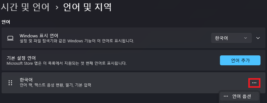 설정 - 시간 및 언어 - 언어 및 지역 - 옵션 - Microsoft 입력기 - 이전 버전의 Microsoft IME 켬