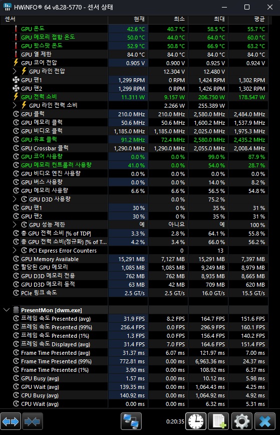 인게임에서 거의 최대프레임 유지