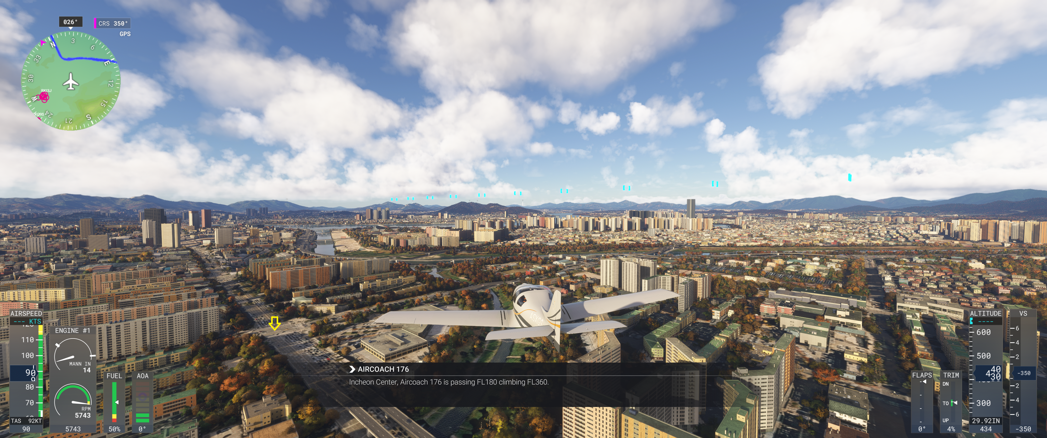 실제 항공 교통량을 반영하여 현실적인 비행 환경을 제공