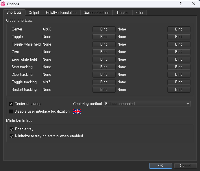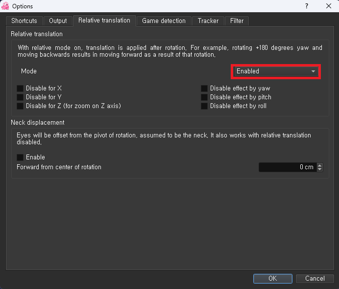 사용중인 opentrack 설정