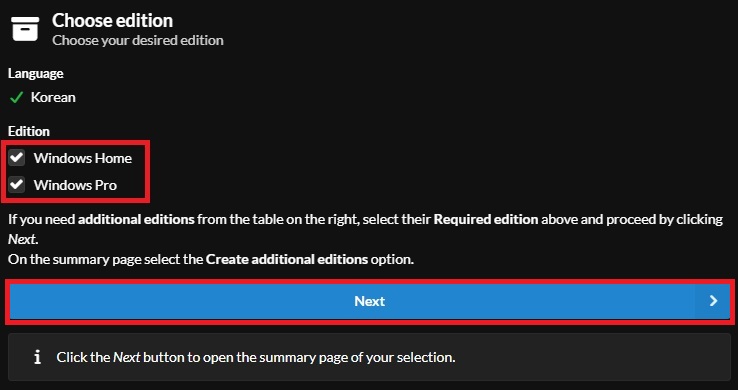 에디션 선택. 둘다 선택 가능
