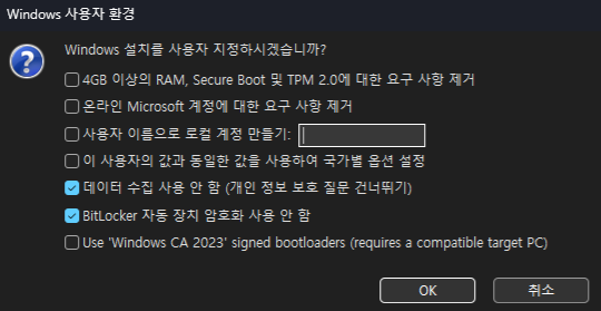 UUP dump를 이용해서 직접 ISO 만들기 (Rufus UEFI CA 2023 옵션 포함)