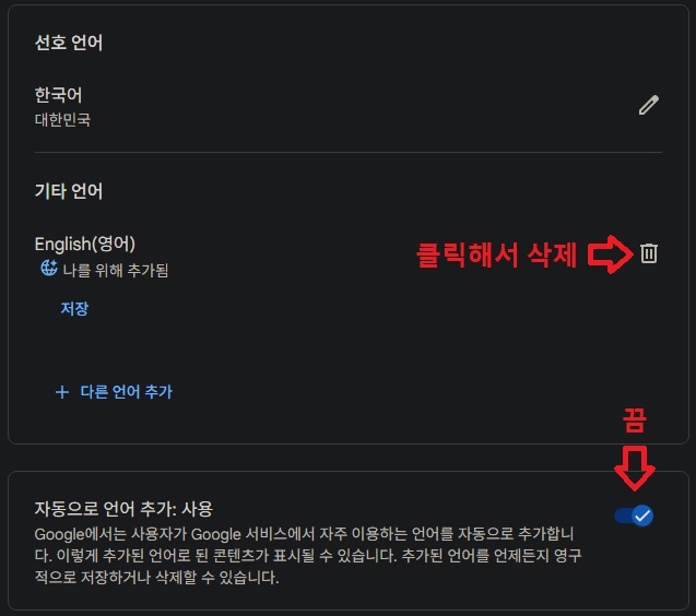 위와 같이 설정을 하고 48시간 정도? 기다리면 '한국어로 번역' 이라는 글씨가 다시 생김.