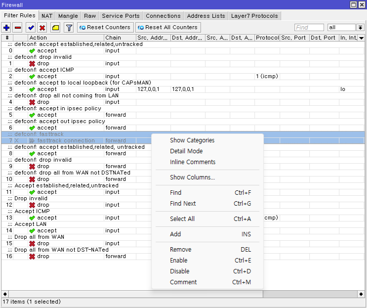 IP -> Firewall -> Filter Rules 탭으로 이동.