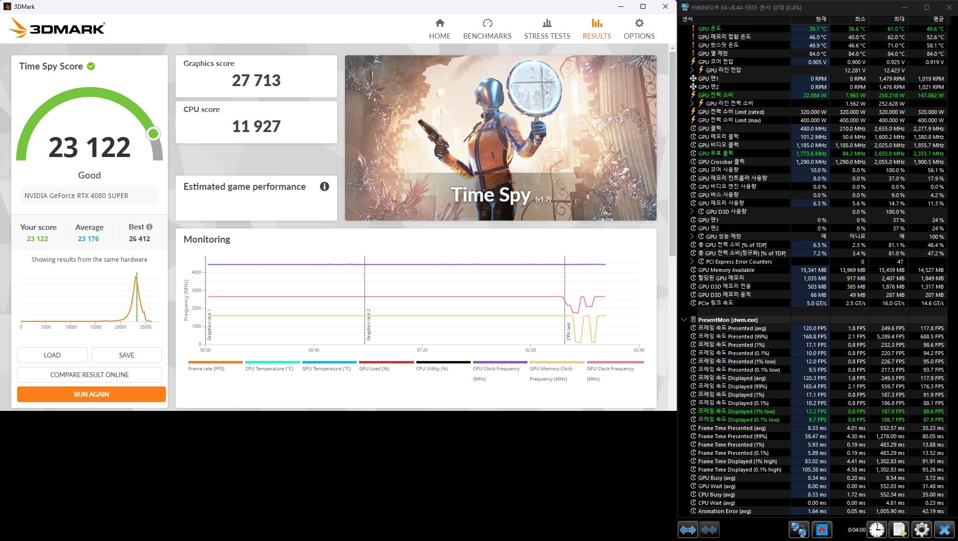 (5800x3D, 4080 Super - Afterburner 전압 925, 클럭 2655, 메모리 +1300, 3440x1440 165Hz)